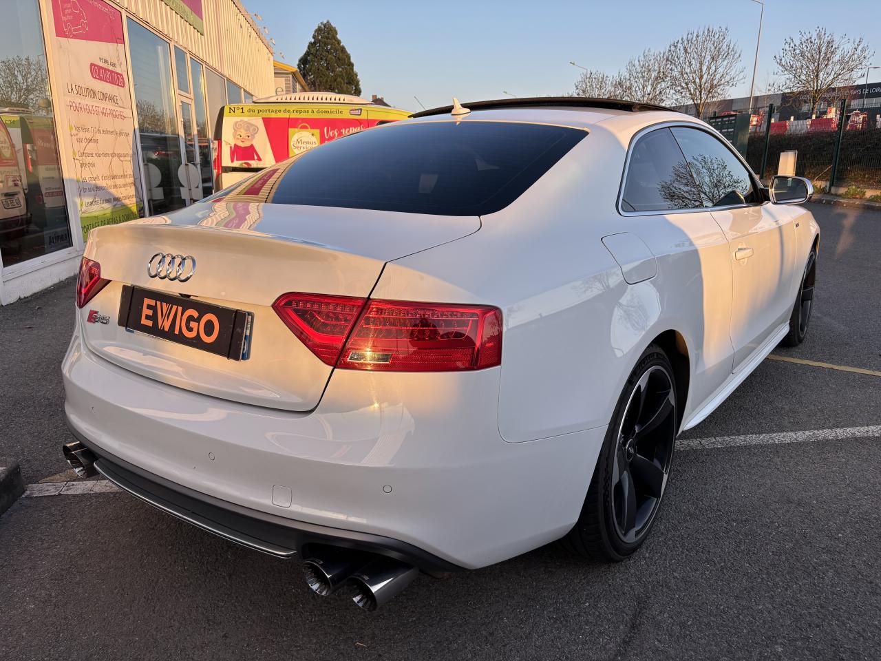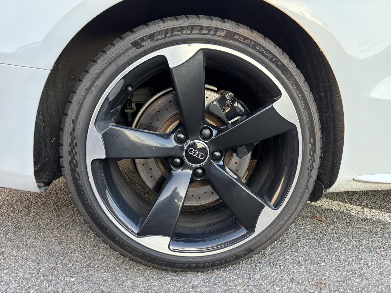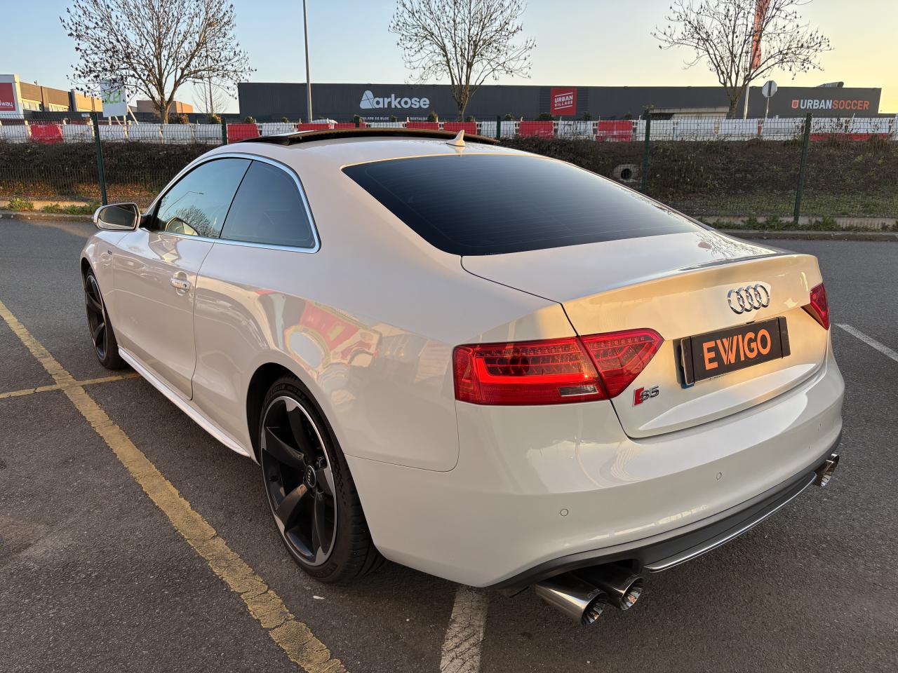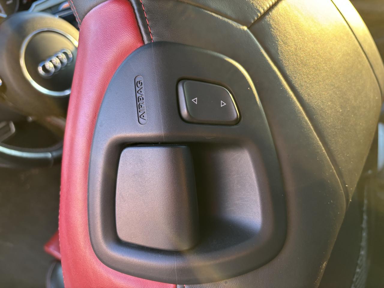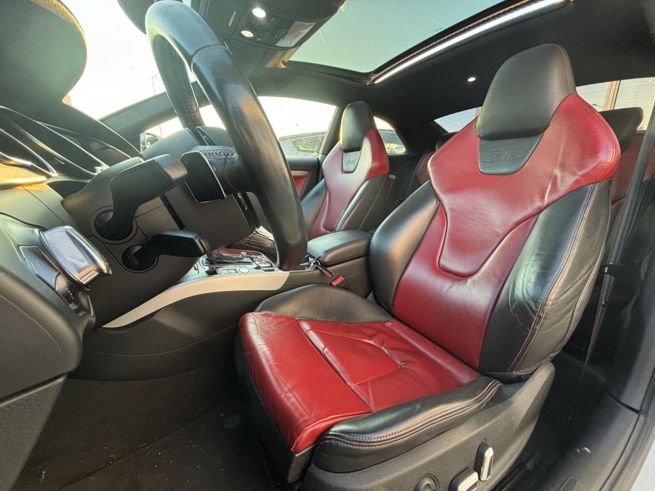 Accoudoir central avant avec vide-pochesAdvanced Key : système d'autorisation d'accès et de démarrage main libreAirbags latérauxAntipatinage électronique ASRApplications décoratives en aluminium brossé mat sur les contre-portes, les garnitures latérales à l'arrière ainsi que sur la console centraleAudi Hold AssistBecquet arrière intégré au couvercle de coffreBlocage électronique de différentiel (EDS)Calandre Singleframe gris titane à grille verticale chroméeCapot de coffre à ouverture automatique lors du déverrouillage du coffre par la télécommande, par la touche située sur la portière ou par actionnement de la touche douce sur le capot de coffre. Fermeture manuelleChâssis sport S avec suspension et amortisseurs plus fermes pour un contact plus direct avec la chaussée et une conduite sportive ; incluant jambes de force en dôme, essieu avant allégé à 5 bras avec essieu radial virtuel, barre stabilisatrice tubulaire ; essiCiel de pavillon en tissu, selon la couleur choisie, argent lunaire ou noirClimatisation automatique Confort Plus 3 zones à fonctionnalités étendues et affi chage numériqueContrôle de pression des pneus : vérifie durant la marche la pression de chacune des rouesCric, rangé dans le coffreDétecteur de pluie et allumage automatique des projecteursDossier des sièges arrière rabattable séparément, avec déverrouillage à distance des dossiers depuis le coffreEntourages de vitre en aluminium, revêtement noir brillant sur les montants de pavillon centraux et les vitres de custode arrièreFrein de stationnement électromécanique : comprend la fonction de frein de stationnement à l'arrêt, assistance de démarrage avec désactivation automatique lors du démarrage et fonction de freinage d'urgence sur les quatre rouesGPS PlusIndicateur de température extérieure dans le système d'information du conducteur ; en cas de températures inférieures à +5 °C, un cristal de glace apparaît sur l'afficheur, avertissant de la possibilité de verglasInstrumentation, avec éclairage réglable, compteur de vitesse électronique avec compteur kilométrique et compteur journalier, compte-tours, horloge, affichage de la température du liquide de refroidissement et jauge de carburantLave-glace, deux vitesses, 4 réglages d'intermittence, balayage coup par coup et lavage-balayage automatiqueOrdinateur de bord couleur et système de contrôle autocheck (incluant programme efficiency)Préparation téléphone 2 W bi-bande (D et E), sans support pour adaptateur ni antenne de toit, commande sur volant multifonction, mains libres, interface BluetoothProgramme électronique de stabilisation ESP : relie ABS, EBV, ASR et EDS avec ses propres capteurs et compare les données de conduite avec les données de référence ; assure davantage de stabilité par freinage ciblé des roues et intervention dans la geQuattro : transmission intégrale permanente avec répartition asymétrique et dynamique de coupleRéglage d'appuis lombaires électriques sur 4 plans pour sièges avantRégulateur de vitesse électronique actif dès 30 km/hRétroviseur intérieur jour/nuit automatique incluant une bande grise en haut du pare-briseRoues de secours temporaireServotronic : direction assistée asservie à la vitesseSièges avant électriques pour longueur, hauteur, inclinaison d'assise et de dossierSièges Sport à l'avantStyle aluminium, dans l'habitacle sur les commutateurs d'éclairage, la commande de la climatisation, les diffuseurs d'air ainsi qu'autour du soufflet de levier de vitessesVolant airbag Sport 3 branches multifonction avec emblème S5 et palettes de changement de vitesses commandé, réglable en hauteur et en profondeur, incluant pommeau et soufflet de levier de vitesses en cuirXénon Plus incluant réglage automatique du site des phares, feux diurnes par bandeau de LED et lave-phares, feux arrière à LED pour feux de position et de stop